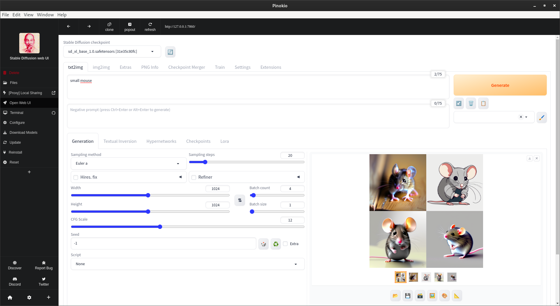 What I noticed while working with Pinokio (Linux, CPU, no GPU):
